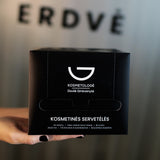 Ant servetėlių dėžutės atvaizduotas ne tik kasdienės odos priežiūros rutinos pavyzdinis planas, bet ir aprašyta išplėstinė jų sudėtis, panaudojimo galimybės.
