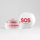 pH formula SOS Eye Rescue – tai lengvos tekstūros, intensyviai veikiantis akių kremas, sukurtas švelniai, tačiau efektyviai prižiūrėti jautrią paakių zoną. Jo sudėtyje esantis unikalus peptidų kompleksas padeda sumažinti smulkias raukšleles, paburkimus ir tamsius ratilus, suteikdamas odai švytėjimo ir jaunatviškumo. Odos identiški keramidai stiprina odos barjerą, gerina elastingumą ir drėkinimą, o chrysinimidas mažina pigmentaciją, stiprina odos tonusą ir stangrumą. Vitaminas E veikia kaip antioksidantas, skatina odos gijimą ir ramina sudirgimus. Kremo sudėtyje esantys šviesą atspindintys pigmentai akimirksniu suteikia paakių sričiai švytėjimo, todėl oda atrodo pailsėjusi ir gaivi.