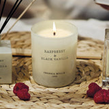 Raspberry & Black Vanilla – tai viliojantis, gurmaniškas kvapas, kuriame susilieja sultingų aviečių saldumas ir sodri, švelniai prieskoniška juodosios vanilės šiluma. Šis aromatas alsuoja švelniu saldumu ir subtilia prabanga, sukurdamas šiltą, jaukią ir maloniai apgaubiančią atmosferą.